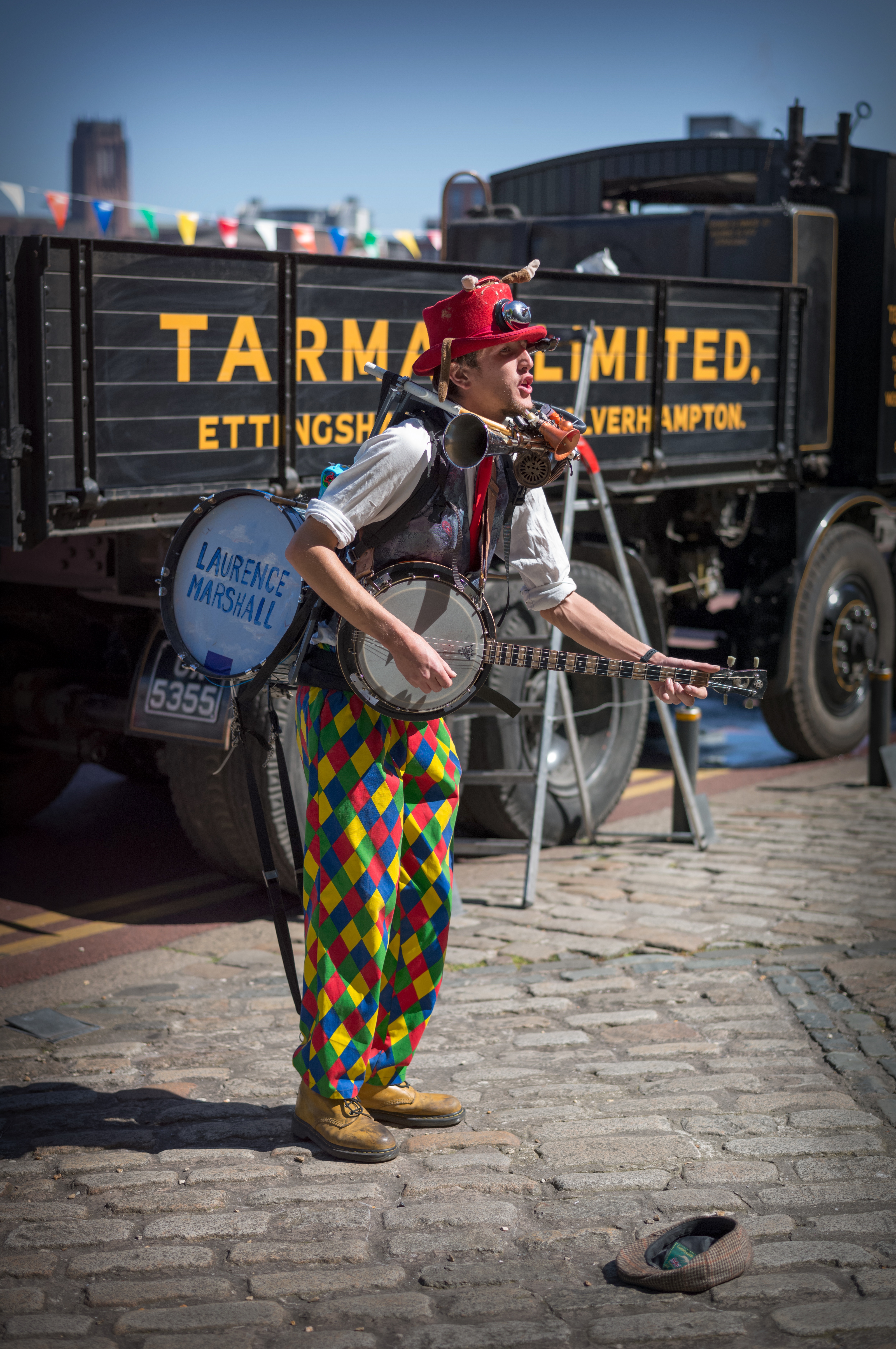 Laurence can bring a festival atmosphere to just about any location. Ideal for walk-around and popping up around a sight. Laurence can perform at steam fairs, international festivals, vintage festivals, war time weekends, arts festivals, folk festivals etc…
