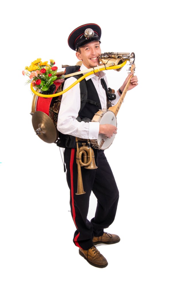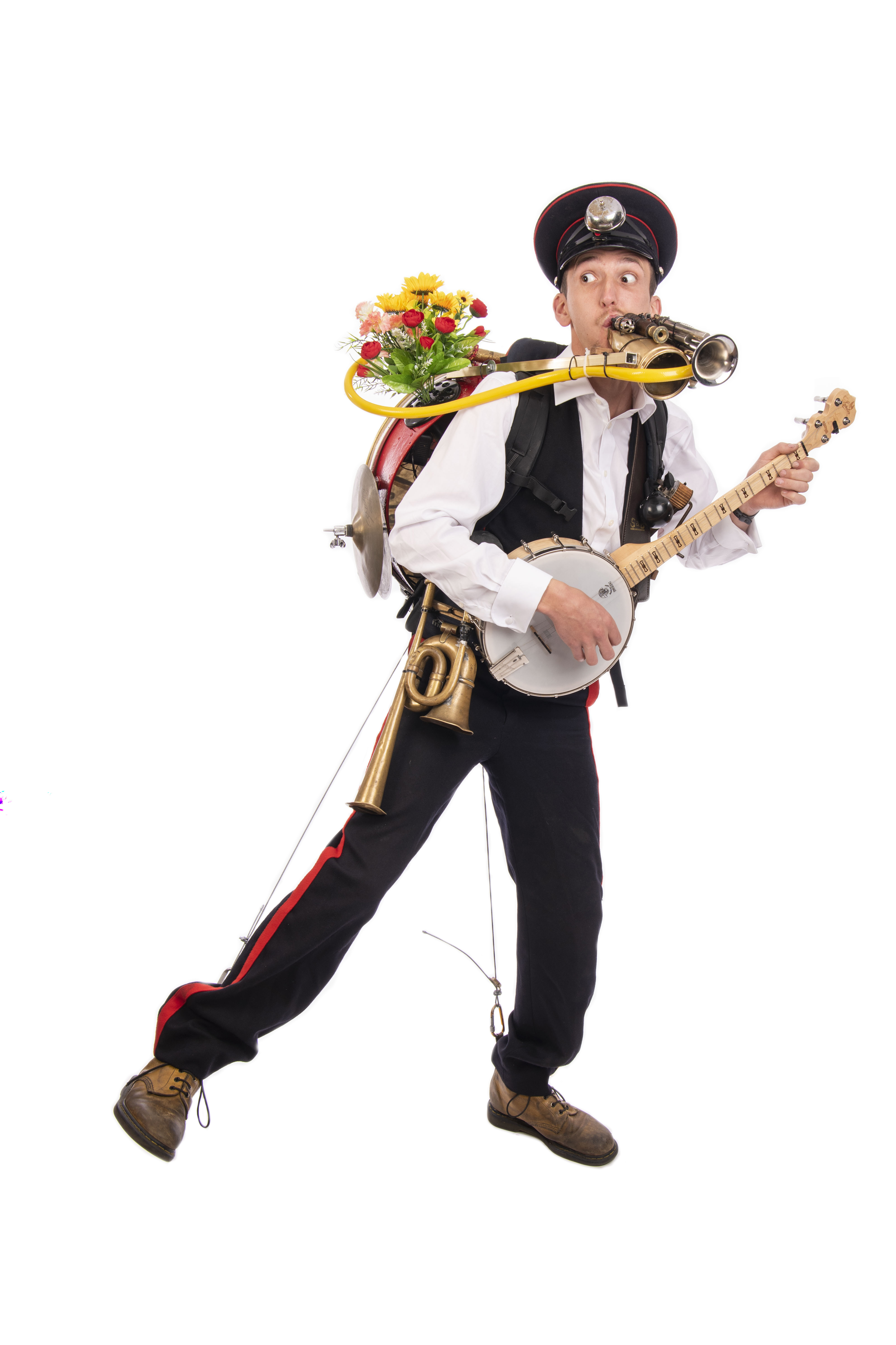 Laurence Marshall is a traditional style one man band perfect for stage shows, walk-about/mix and mingle and street and outdoor events. With over 10 years experience Laurence is in demand internationally for his great fun performances and inventive style.